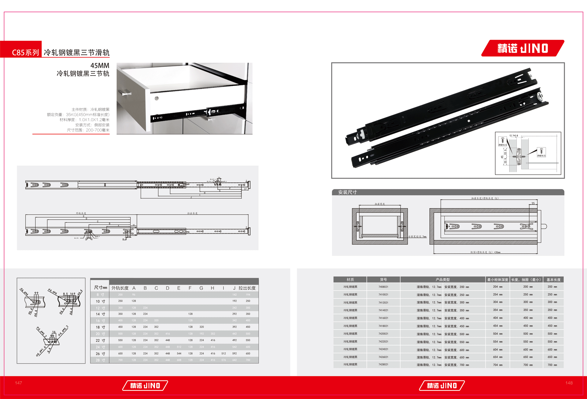 阅读 1541 · 发布日期 2020-04-24主件材质:冷轧钢镀黑 额定负重:35KG(450mm标准长度) 材料厚度:1.0X1.0X1.2毫米 安装方式:侧部安装 尺寸范围:200-700毫米...
