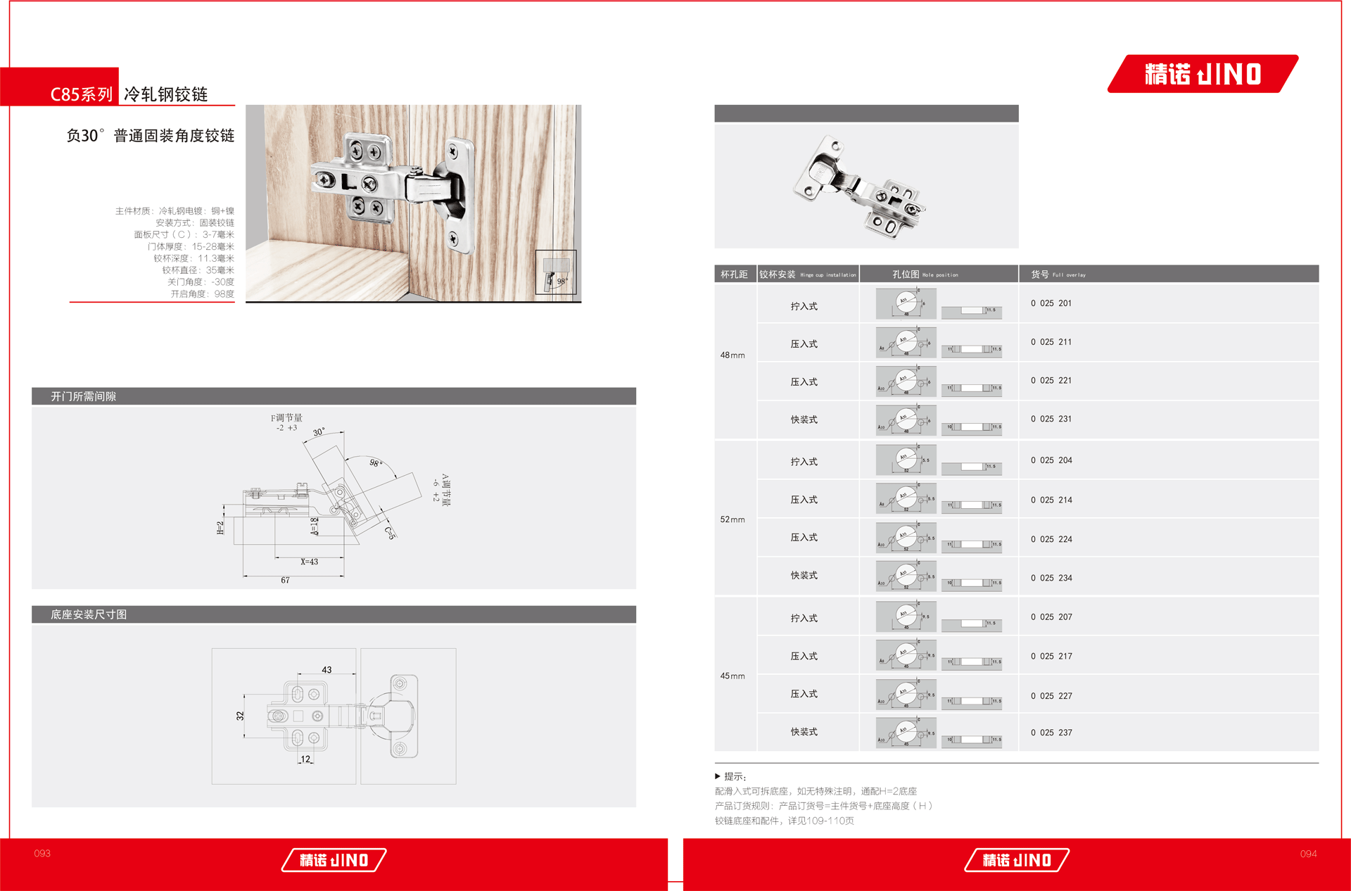 C85 负30°普通固装角度铰链