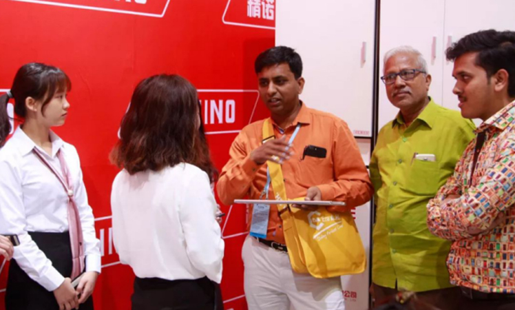 工作人员热情饱满地讲解精诺的产品