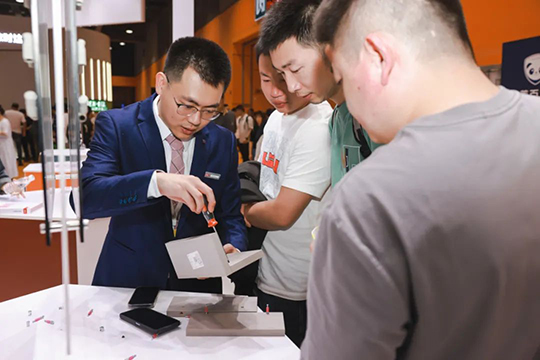 品体验区,体验感十足,方便客户更全面直观地了解精诺原创产品。客商们在体验后均表现