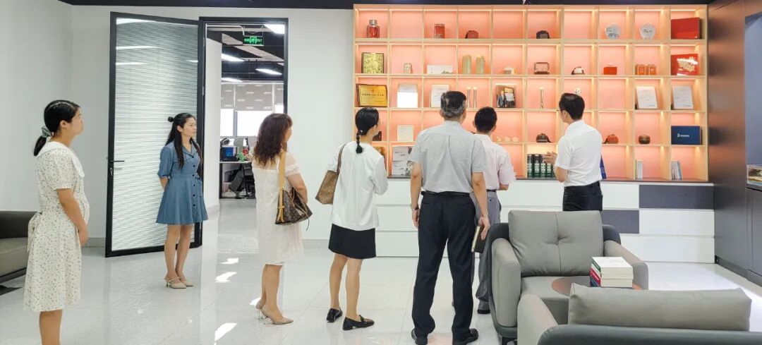在执行董事林晓群的陪同下,广州市开发区知识产权局领导一行先后参观了我司的专利墙和荣誉展厅。