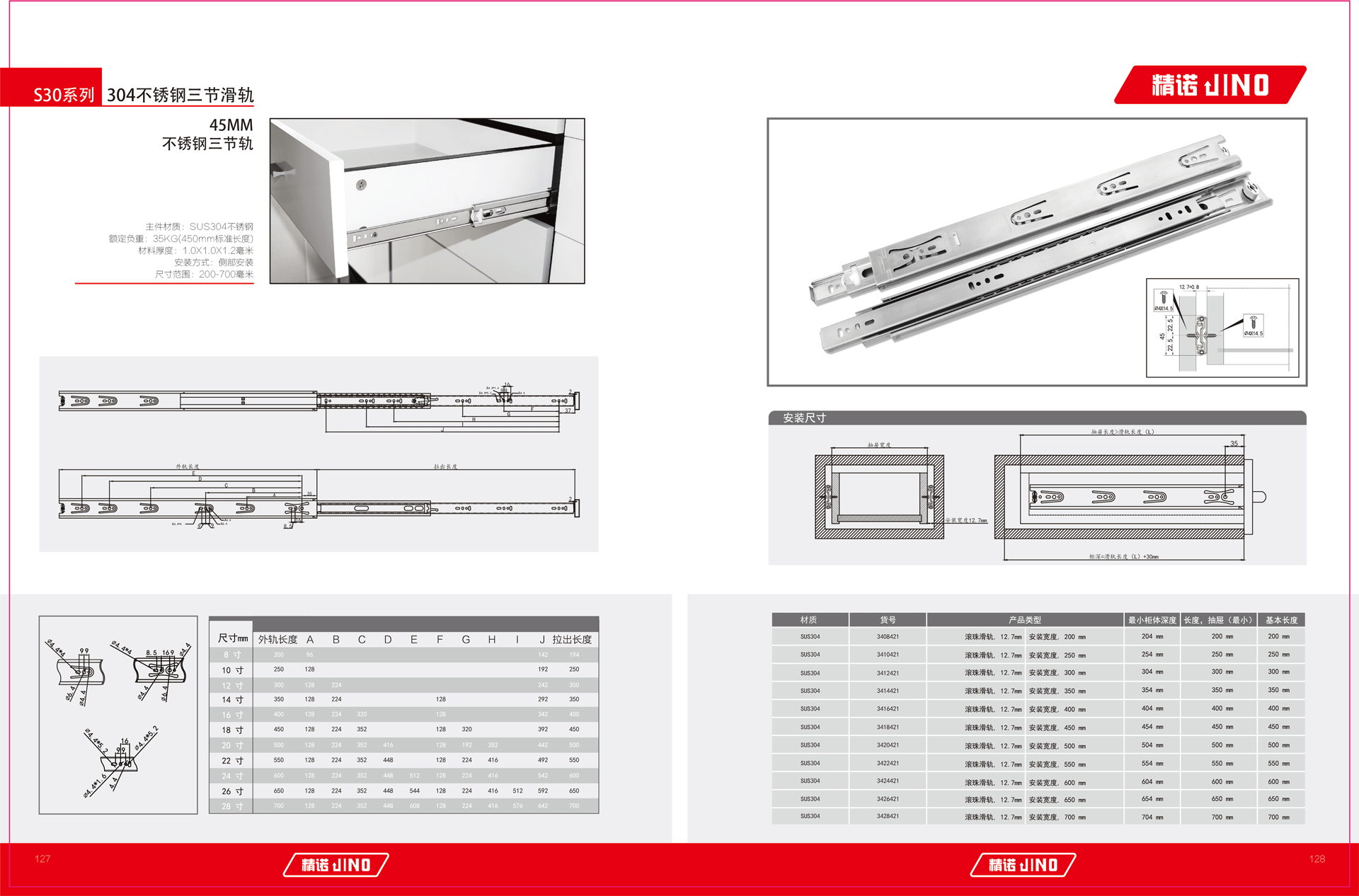 阅读 2092 · 发布日期 2017-04-24主件材质:SUS304不锈钢 额定负重:35KG(450mm标准长度) 材料厚度:1.0X1.0X1.2毫米 安装方式:侧部安装 尺寸范围:200-700毫米...