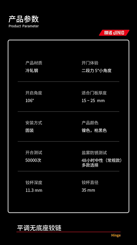 原创产品,精诺智造—无底座平调铰链